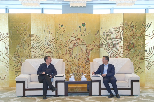 3月21日,中国中化董事、总经理、党组副书记焦健在京会见来访的沧州市委副书记、市长向辉一行,双方就持续推进化工新材料、现代农业、环境科学等领域合作进行深入交流。