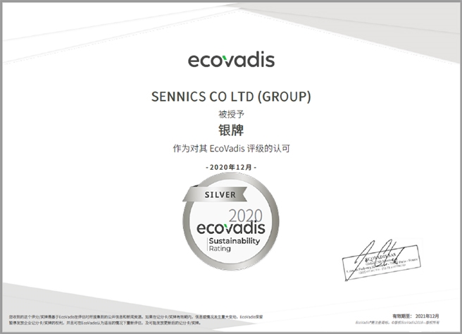 圣奥化学再获EcoVadis银牌勋章 |