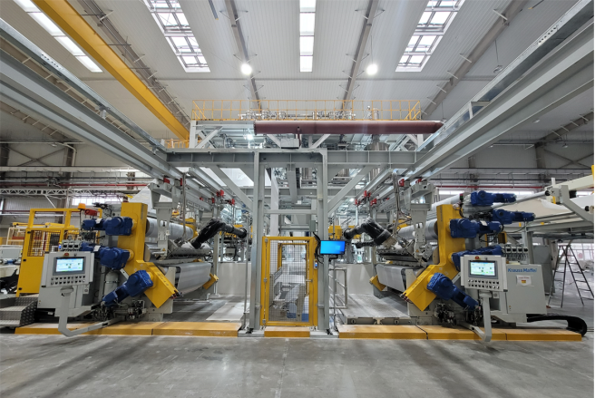 近日,克劳斯玛菲TPO(热塑性聚烯烃)防水卷材生产线于三棵树安徽明光工厂调试成功,正式交付客户投入生产。该生产线将用于P型(聚酯纤维内增强型)、H型(均质型)和HL型(背衬无纺布型)TPO防水卷材全自动生产,投产后可实现1700万㎡/年的高产能。 TPO(热塑性聚烯烃)防水卷材具有高抗渗、高耐候、易维护、长寿命、绿色环保等产品优势,被广泛用于种植屋面系统、光伏屋面系统、冷屋面系统等绿色建筑应用领域,其防水设计年限可达15年。随着国内大量钢结构工业厂房以及公共建筑的兴起,在防水标准不断提高的背景下,TPO(热塑性聚烯烃)防水卷材将进一步得到广泛推广与应用,市场需求也将持续扩大。 克劳斯玛菲拥有超过30年高分子屋面防水卷材生产整线经验,全球交付生产线超过50条,可灵活实现片材上下层不同层厚布置、各种增强层、毛毡背衬、不同的颜色、填充剂和阻燃剂、大小卷收卷等不同工艺要求。