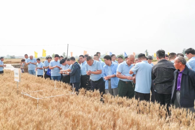 眼下正值夏粮收割时节。为示范推广新技术、提升小麦种植成效,日前,安徽省阜阳市颍上县举办小麦技术示范现场会,先正达集团中国、当地植保站、农资经营者、种植大户到场交流观摩今年该地推广的新植保技术和示范效果。 现场会上,一片“琴键”般的小麦田格外引人注目。其中,颜色暗黄的方块是因为杂菌导致穗头发黑;而颜色黄亮的区域是应用了先正达集团中国的麦甜植保技术,这一高效防病增产新技术有效改善了小麦落黄,提高了产量和品质。测产环节,工作人员在示范田、对照田随机选取1平方米地块收割麦穗称重,结果显示,新技术使示范田亩增产180斤。 赤霉病防治一直是困扰当地种粮大户的难题。安徽省植保站防治科负责人表示,2023年,先正达集团中国麦甜植保技术在安徽应用面积超过400万亩次,由于今年强调第一遍就“用好药,用对药”,防控赤霉病效果比往年更好。 先正达集团中国麦甜植保技术历经近10年研发,抑菌活性高,可以更低用量实现更高效的赤霉病防控效果,并能有效预防穗霉杂菌。自2022年至今,该项技术在小麦的推广应用稳步增长,全国累计使用面积达2000万亩次,平均每亩实现增产100斤以上,累计增产约20亿斤。