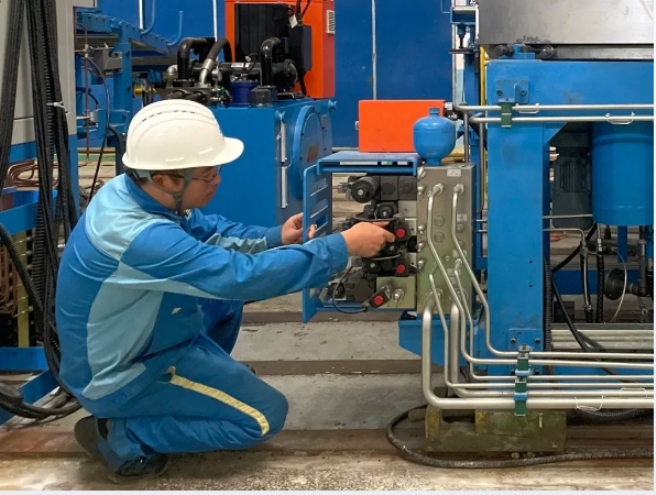 与原有设备相比,新品设备凭借创新结构设计,可使运行速度提升约20%,其配备的集成阀组、伺服液压站等组件,能够显著降低设备能耗。同时,设备采用胶囊泄漏自动检测技术,并可与生产现场的自动物流系统精准对接,助力客户打造“智慧、高效、绿色、安全”的轮胎制造示范工厂。