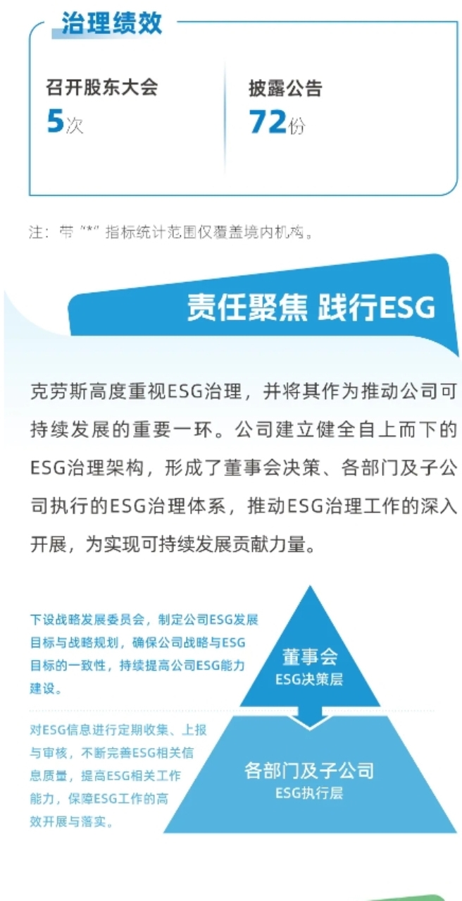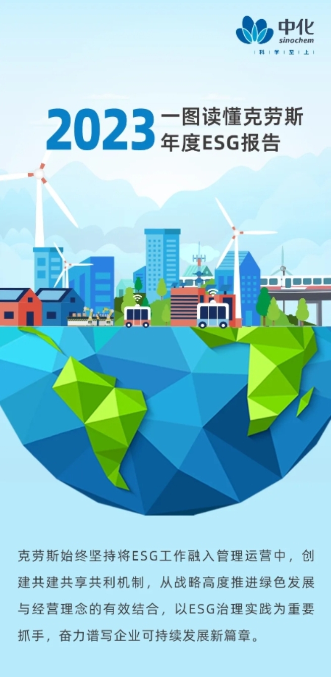 目前,E(Environmental环境)S(Social 社会)G(Governance 治理)逐渐成为企业高质量可持续发展的重要衡量指标。中国中化坚定履行企业公民责任贯彻落实新发展理念,坚持绿色发展、循环发展、低碳发展,建立完善的环境、社会责任和公司治理体系。近日,中国中化旗下克劳斯玛菲发布2023年ESG报告。