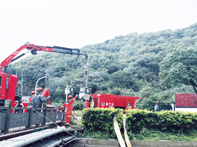 11月1日,受21号台风“康妮”影响,浙江省舟山市迎来大暴雨天气,多地发生积水,舟山市发布城市内涝风险黄色预警。接到调令,国家危险化学品应急救援中化舟山队第一时间出动前往抗台排涝一线。 11月1日8时30分,舟山市定海区新城翁洲新村部分村庄被淹。中化舟山队紧急派遣救援人员6名,利用应急排涝车持续排水3小时,成功解除当地内涝险情。同日11时05分,舟山市普陀区老城区及部门农村田地被淹,中化舟山队派遣救援人员利用大流量远程排涝装备、增压泵车等排涝装备,科学组织排涝工作,助力保障道路交通、生产生活秩序恢复正常。