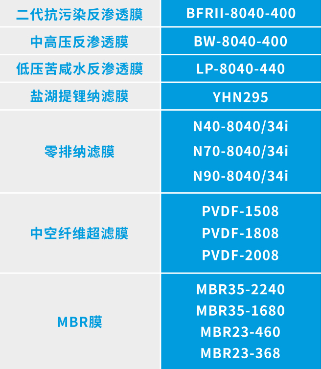 杭州水处理是我国膜法水处理技术的发源地,拥有一支以中国工程院院士高从堦领衔的科技创新团队,相关科技成果曾两次荣获国家科技进步一等奖。通过自主创新和成果转化,杭州水处理形成了具有自主知识产权的系列化膜材料与装备产品,旗下明星膜产品包括: