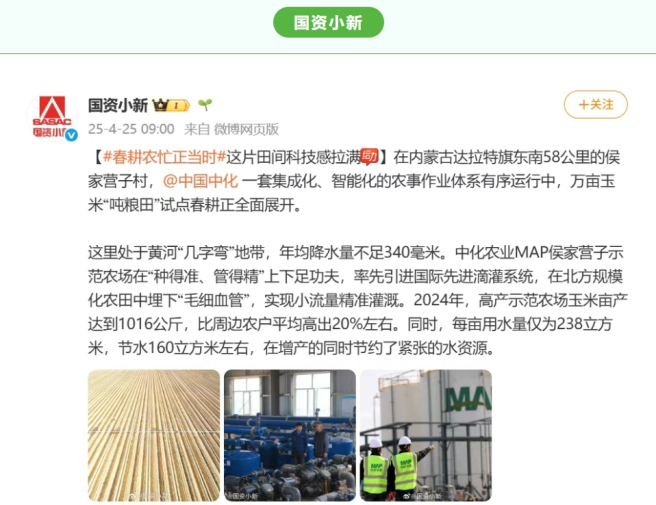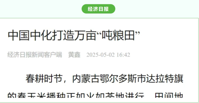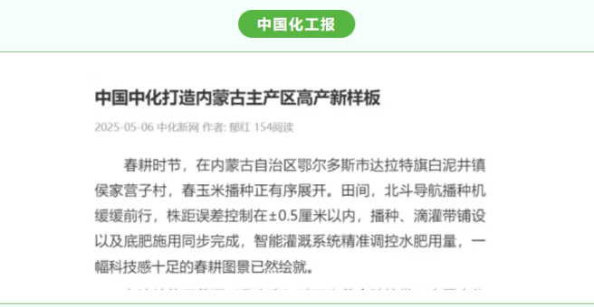 4月22日至23日,“打造现代农业样板 中化农业MAP助力千万亩吨粮田丰产——2025年中国中化媒体开放日”期间,多家媒体走进内蒙古达拉特旗、土默特右旗等地,见证中国中化旗下中化农业MAP在当地打造的现代农业样板的显著成效。