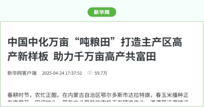 内蒙古作为国家粮食主产区,土地集中连片、光热资源优越,单产提升潜力巨大。中化农业MAP立足区域禀赋,自2018年起在内蒙古系统引入现代农业要素,推动“良田、良种、良法、良机、良制”深度融合,打造高标准、规模化、绿色化的“吨粮田”样板,为农业新质生产力发展提供实践范本。
