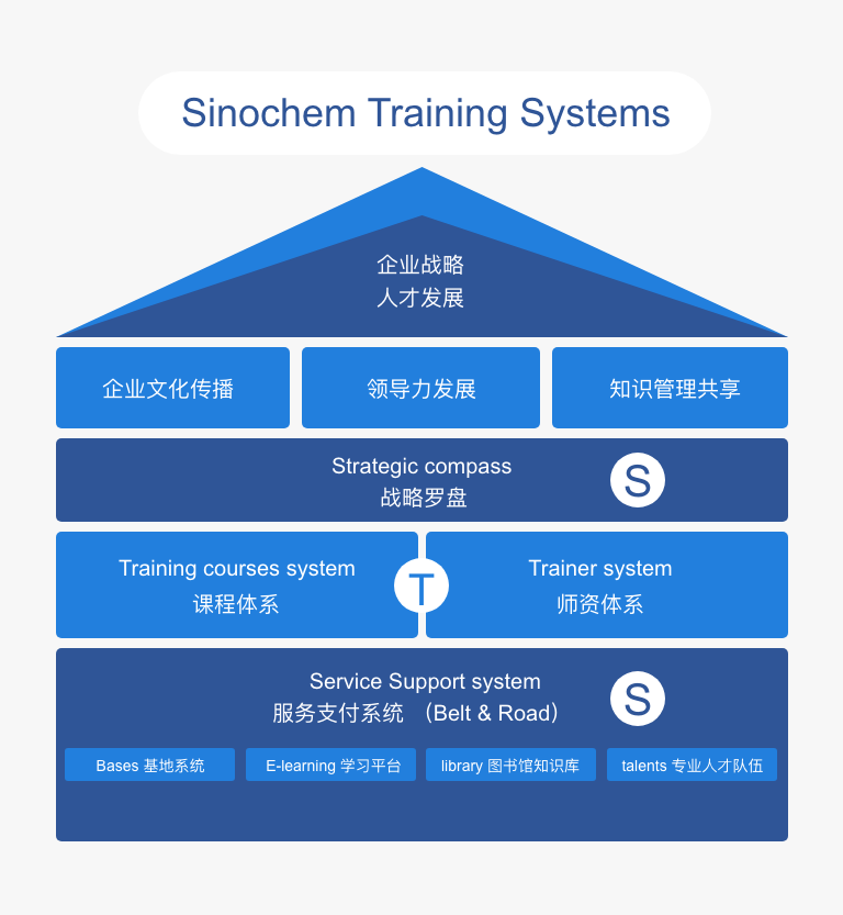 Guided by the concept of “full involvement, prioritized nurturing, varied responsibility, top-down linkage, classified training, individualized cultivation”, we have built Sinochem Training Systems (STS) focusing on the education and training of senior managers, high-potential talents, newly promoted staff, newly recruited staff, professional science and technology personnel and professional executive personnel. The STS aims to perfect the three major talent development sequences in management, technology and skills, strengthen training at source, in follow-up and during the whole process, combine career development with education training, and establish a sound training program system and learning development map.