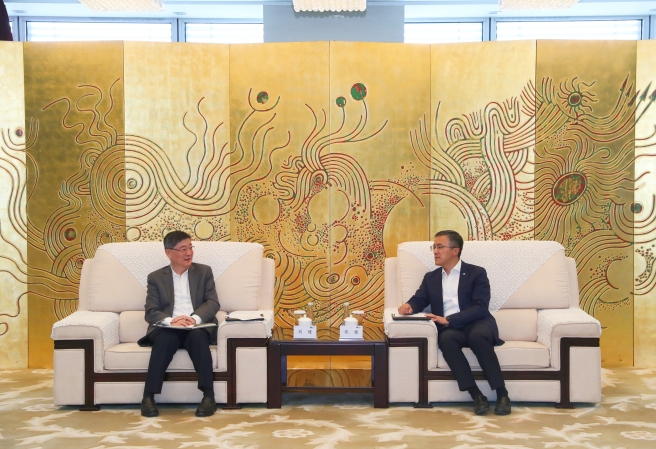 5月14日,中国中化董事、总经理、党组副书记焦健在京会见来访的上海市金山区委书记刘健一行,双方就进一步深化合作进行交流。