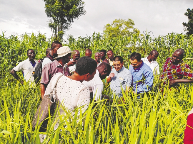 目前,正值西非国家多哥共和国的农忙时节。2019年起,荃银高科积极响应国家号召,履行央企责任担当,承担多哥多个农业援助项目。三年来,荃银高科成功筛选出3个适合多哥当地种植的水稻新品种,并推广配套种植技术。该水稻品种较当地常规品种增产幅度高达50%以上,为多哥水稻丰产提供保障,助力农民脱贫致富,取得良好社会反响。图为荃银高科水稻专家孙方胜在示范田现场,为当地农民讲解水稻抽穗扬花期的关键技术和田间管理要点。