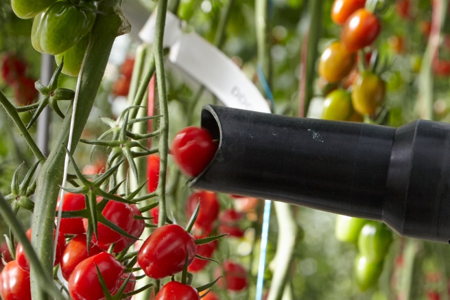 智能机器人收割番茄 然而从一粒种子到75公斤番茄的过程,并非总是一帆风顺,也需要过五关斩六将,比如与病毒的斗争—— 番茄褐色皱纹果病毒(ToBRFV)是近年来危害番茄生产的主要病毒之一。该病毒于2015年首次被发现,因传播速度快,如今已影响到全球番茄生产。特别是在全球番茄种植逐渐转移到温室环境的背景下,番茄产量受创尤甚。这种病毒可导致番茄种植园平均损失20%至30%的收成,严重者甚至颗粒无收。 尽管种植者和种子公司采取了严格的植物检疫管理措施,如轮作、种子消毒、根除已感染作物以及对受污染温室进行化学处理等,但病毒仍在继续传播。迄今为止,位于亚洲、欧洲、北美和非洲的至少35个国家报告发现ToBRFV病毒。 “番茄种植者因这种病毒倍感压力。我们的科学家多年来一直致力于抗击各种病原体,最终找到了应对这种病毒的解决方案。”先正达集团全球蔬菜种子研发部茄科种质开发负责人马塞尔·普林斯(Marcel Prins)说。