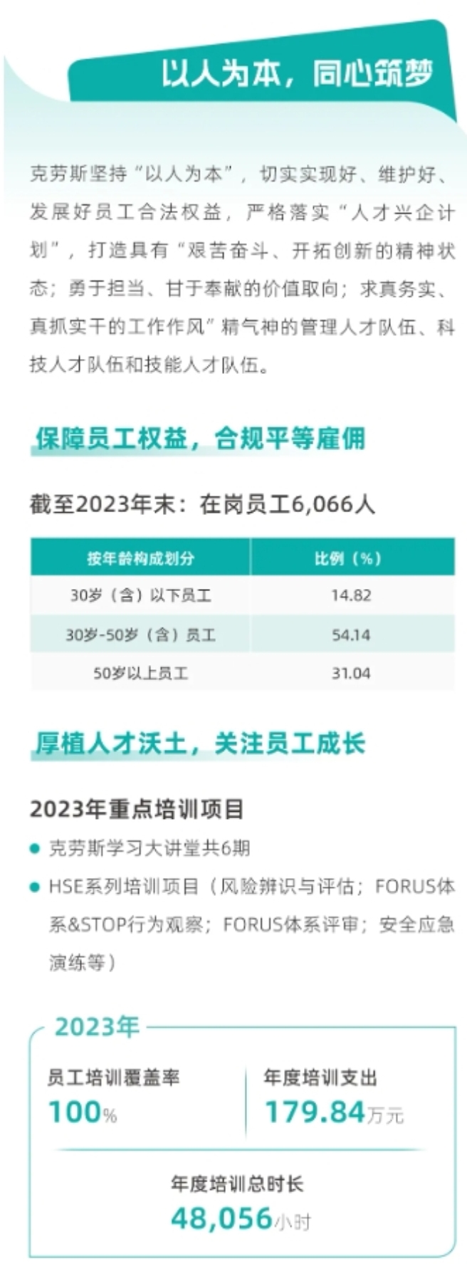 目前,E(Environmental环境)S(Social 社会)G(Governance 治理)逐渐成为企业高质量可持续发展的重要衡量指标。中国中化坚定履行企业公民责任贯彻落实新发展理念,坚持绿色发展、循环发展、低碳发展,建立完善的环境、社会责任和公司治理体系。近日,中国中化旗下克劳斯玛菲发布2023年ESG报告。