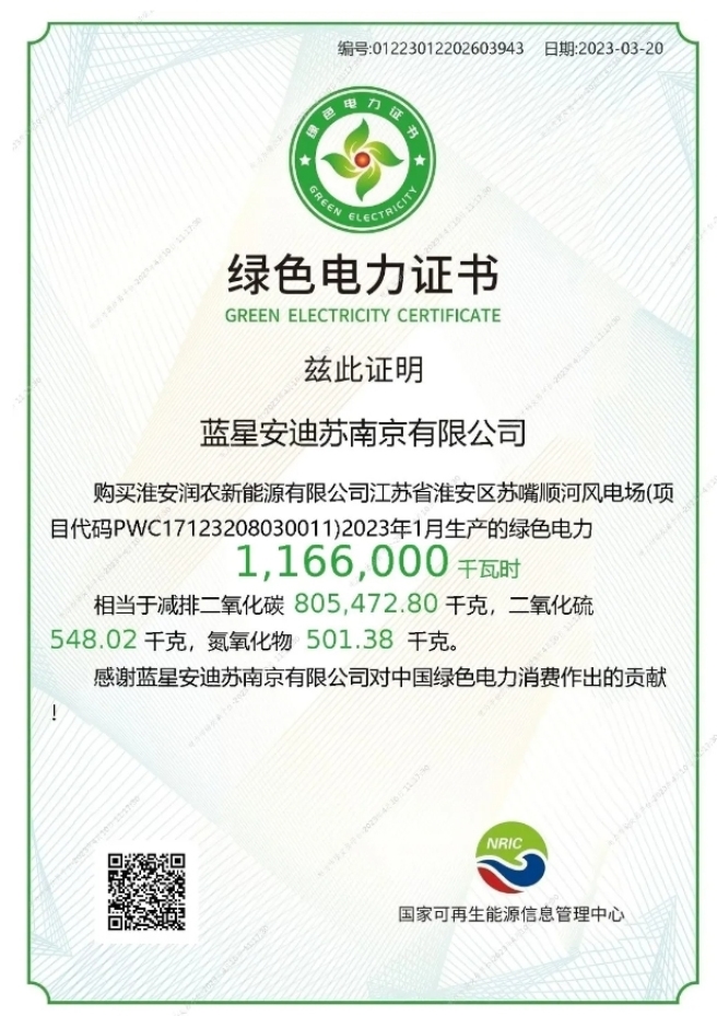 目前,E(Environmental环境)S(Social 社会)G(Governance 治理)逐渐成为企业高质量可持续发展的重要衡量指标。中国中化坚定履行企业公民责任贯彻落实新发展理念,坚持绿色发展、循环发展、低碳发展,建立完善的环境、社会责任和公司治理体系。近日,中国中化旗下蓝星安迪苏发布2023年ESG报告。 立足产业链 发展可持续的生产与消费模式 2023年,蓝星安迪苏多措并举,对公司所有碳足迹进行监测,以应对气候变化及其影响,减少价值链的环境足迹,提高可持续发展能力。 绿色电力占比逐年提升:蓝星安迪苏购买绿色电力占比逐年提升(2023年为 20.2% ,2021年为14.7%)。2023年初,蓝星安迪苏南京工厂签署低碳电力供应合同,相当于减少二氧化碳排放量805.47吨,减少二氧化硫排放量 0.55吨。