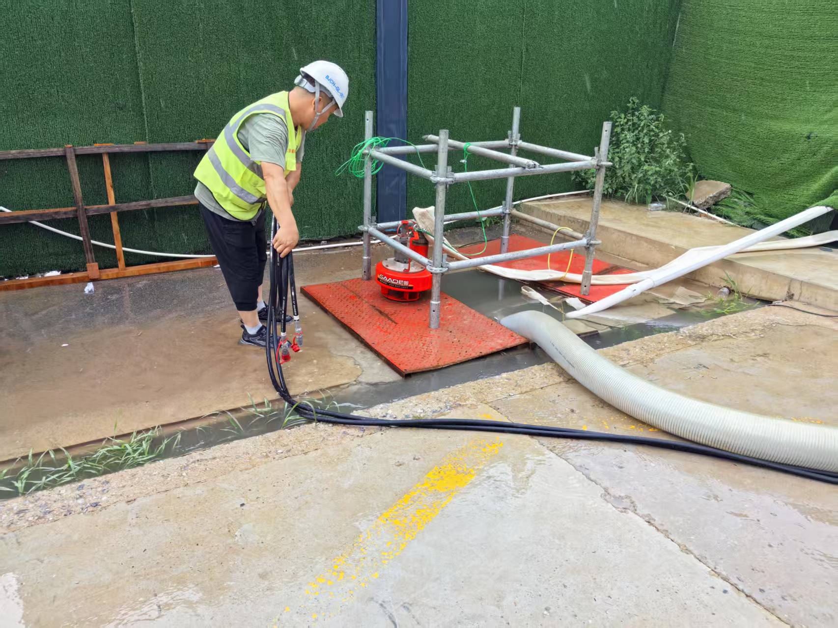 山东圣奥:汛情形势严峻,山东圣奥安排专人进行24小时不间断值班巡查,密切关注雨情水情变化。一旦发现险情,便立即启动应急预案,调配人力物力展开抢险救援。强降雨过后,员工用潜水泵进行外部抽水作业,防止低洼处出现积水隐患,保障汛期安全生产。