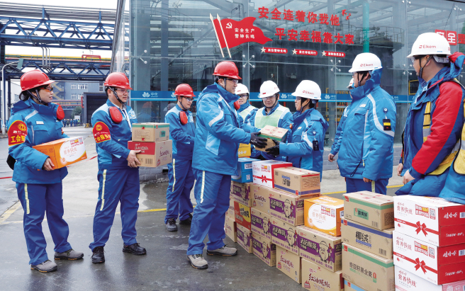 近日,星火有机硅多个分厂陆续启动年度检修工作。面对寒潮天气,一线干部员工全力奋战,确保检修顺利进行。为做好生产服务保障工作,2月14日,星火有机硅工会组织服务队前往检修现场,向辛勤工作的检修人员送去暖心物资,并叮嘱大家注意防寒保暖、劳逸结合,安全高效完成检修任务。